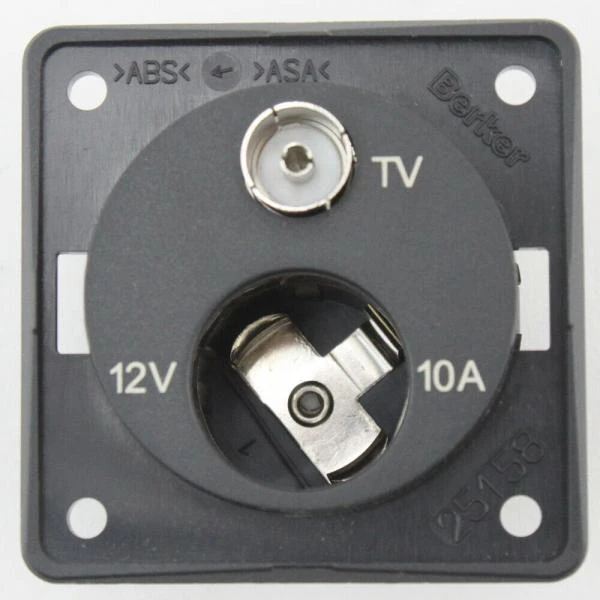 Berker 12 volt Cigar Socket and TV Point Anthracite W4 21227A. Berker 12 volt Cigar Socket and TV Point Anthracite W4 21227A.. Combined 12v cigar socket and TV point. Ideal to power your TV with both 12v and a TV signal.