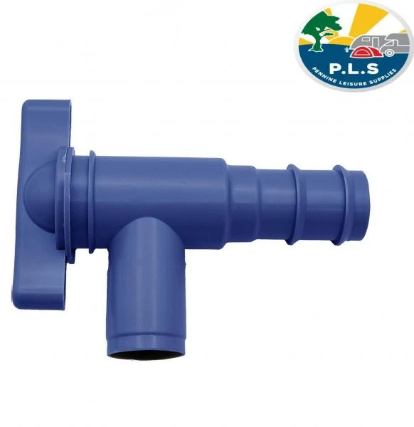 Blue fresh water drain tap for Motorhome, Caravan or Camper with an onboard waste water tank