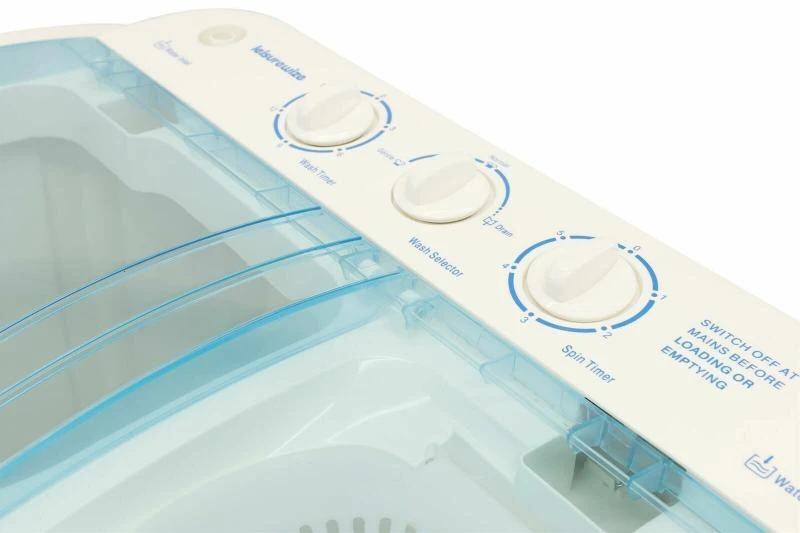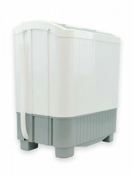 This energy efficient twin tub gravity drain washing machine is portable and lightweight. It is mains operated and it is