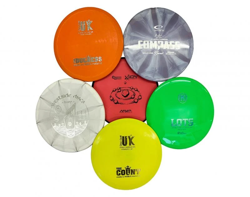 Disc Golf UK Taster Bag – 2X Putters, 2X Midrange, 2X Drivers & Bag Frisbee Golf