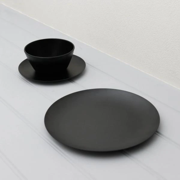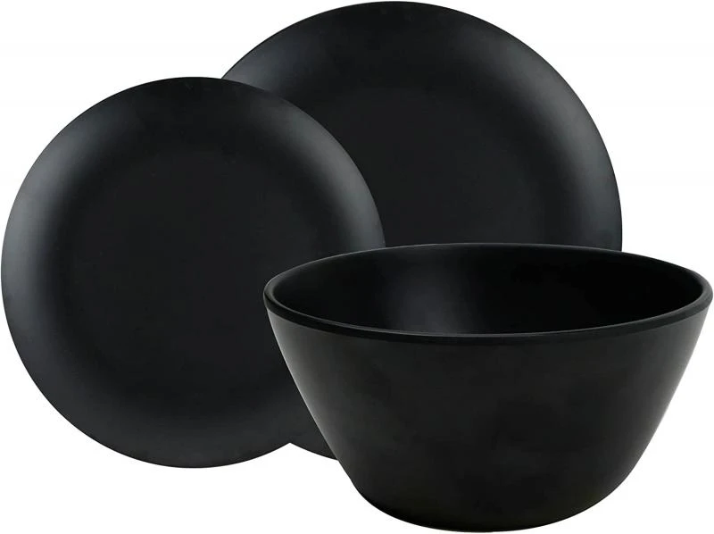 Leisurewize 12 Piece Matt Black Melamine Dinner Set Caravan Camping Shale LW710