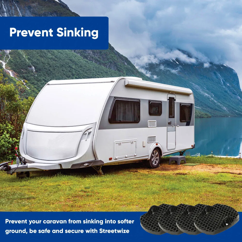 Pro Paw+, from Leisurewize, provides a stable base for your caravan’s corner steadies, while also preventing your caravan from sinking or becoming unbalanced when pitched on soft ground.