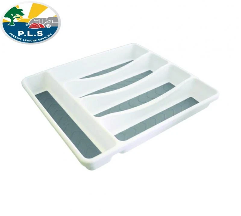 PLS Caravan & Motorhome Drawer Tidy Cutlery Tray 5 Section MI500. Cutlery Tray 5 Position. White Plastic with non slip grey inner base.