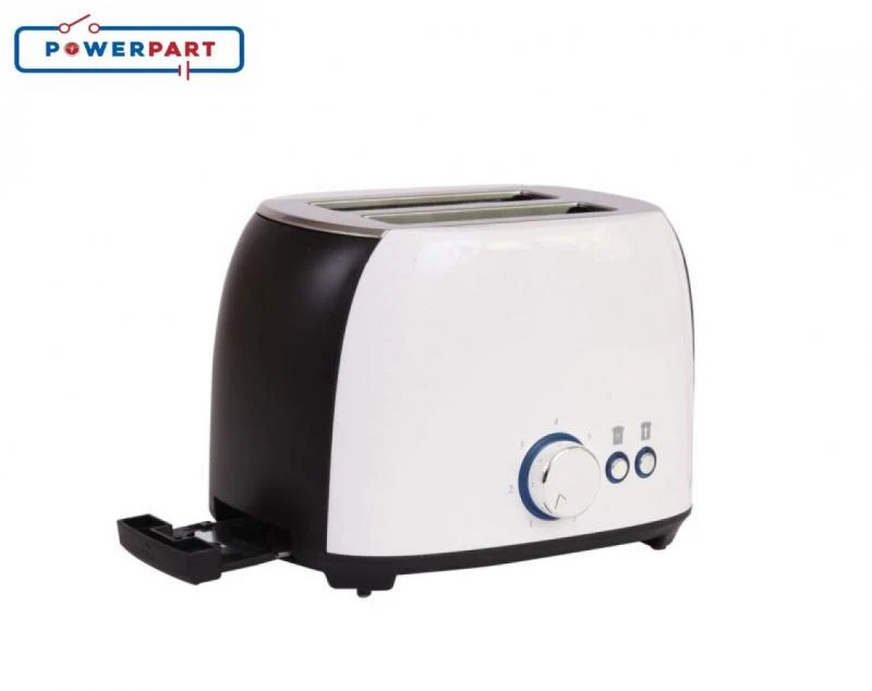 1 x 2 Slice Toaster White and Black 240v complete with Slide out crumb tray, Variable Browning Control, Defrost & Cancel Buttons, Low Wattage at 800w makes it Ideal for caravans & Motorhomes.