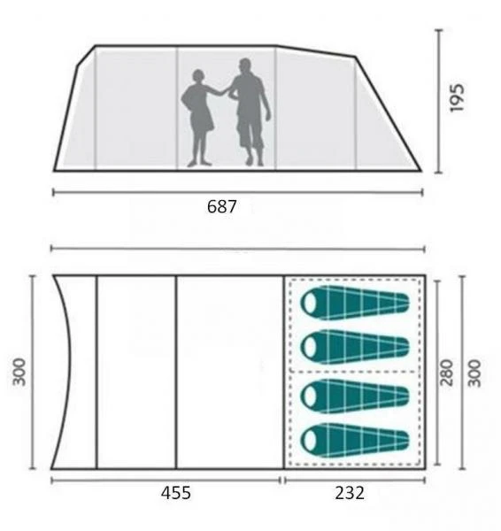 Material: 150D Waterproof Polyester oxford flysheet with taped seams and a 3000mm HH rating. A 180T Polyester Inner-Tent is lightweight and breathable.