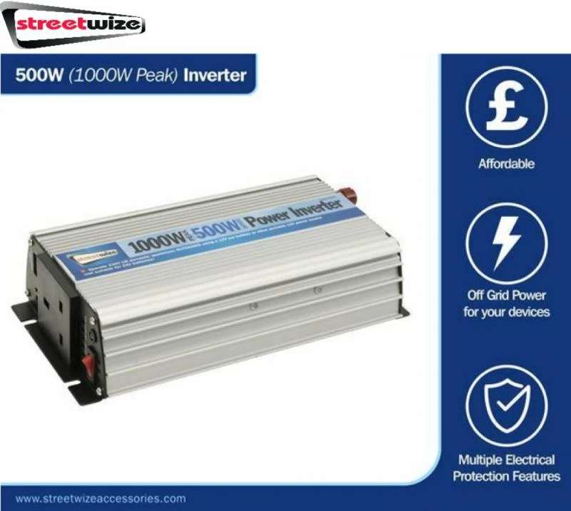 Streetwize 12v to 500 Watt /1000 Watt Inverter Power 500 Watt SWINV500