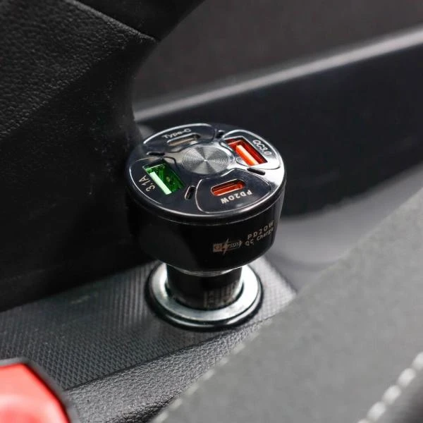 This 12V car USB charger is equipped with four charging ports for Type C USB charging and Type A USB charging. Charge multiple devices while on the road. The perfect gadget for long trips.