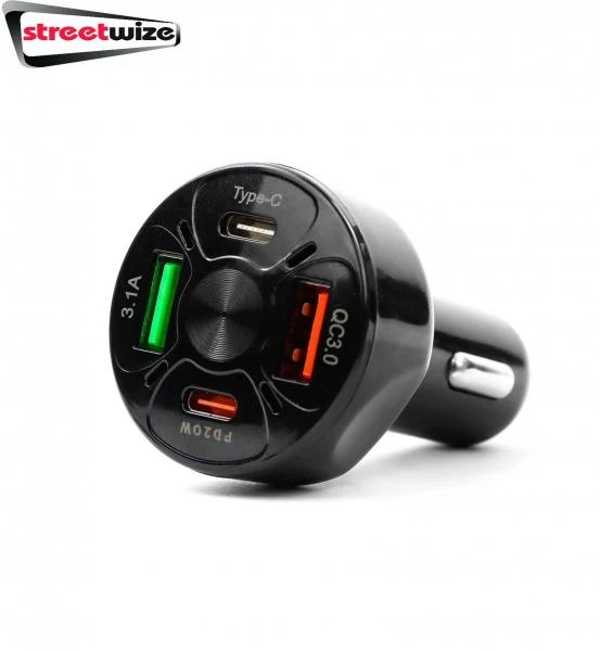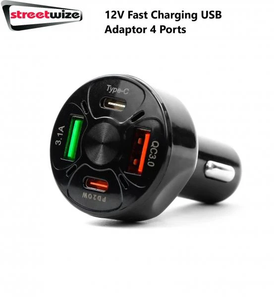 Streetwize Fast Charging Car Adaptor USB 4 Ports 12V Type C USB Type A Charger SWUSB21