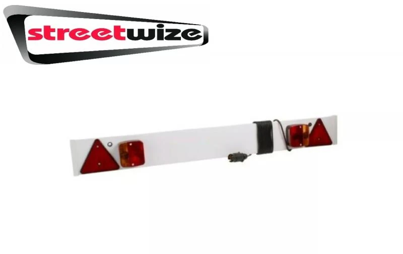 Streetwize Trailer Lighting Board 4ft With 5m Cable Reflective Triangle SWTT20. This 4 foot (48″) lighting board is ideal for placing on the back of cycles and other bulky objects which cover the existing lights when towing or touring.