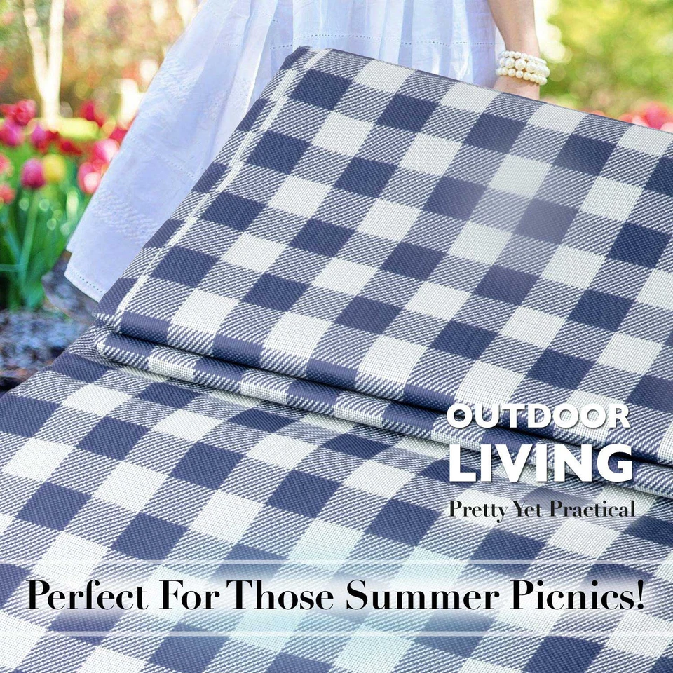 Easy to clean and convenient to carry with velcro fastening and carry handle. Popular Gingham Navy design.