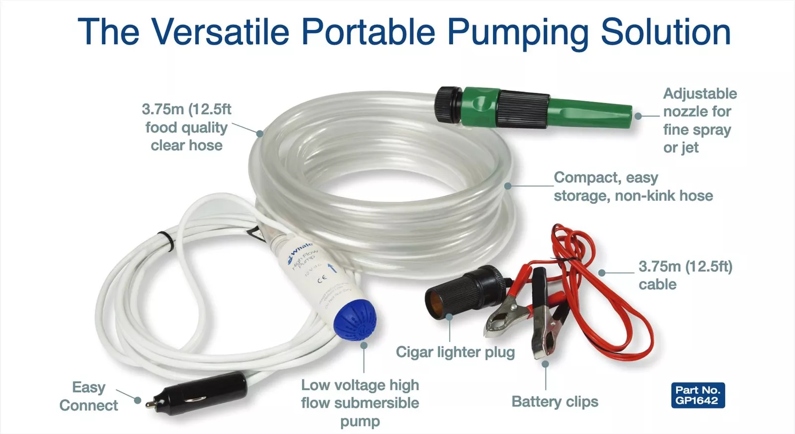 WHALE GP1642 Portable 12v Submersible Water Pump Kit Caravan Motorhome Boat